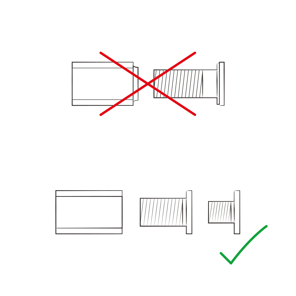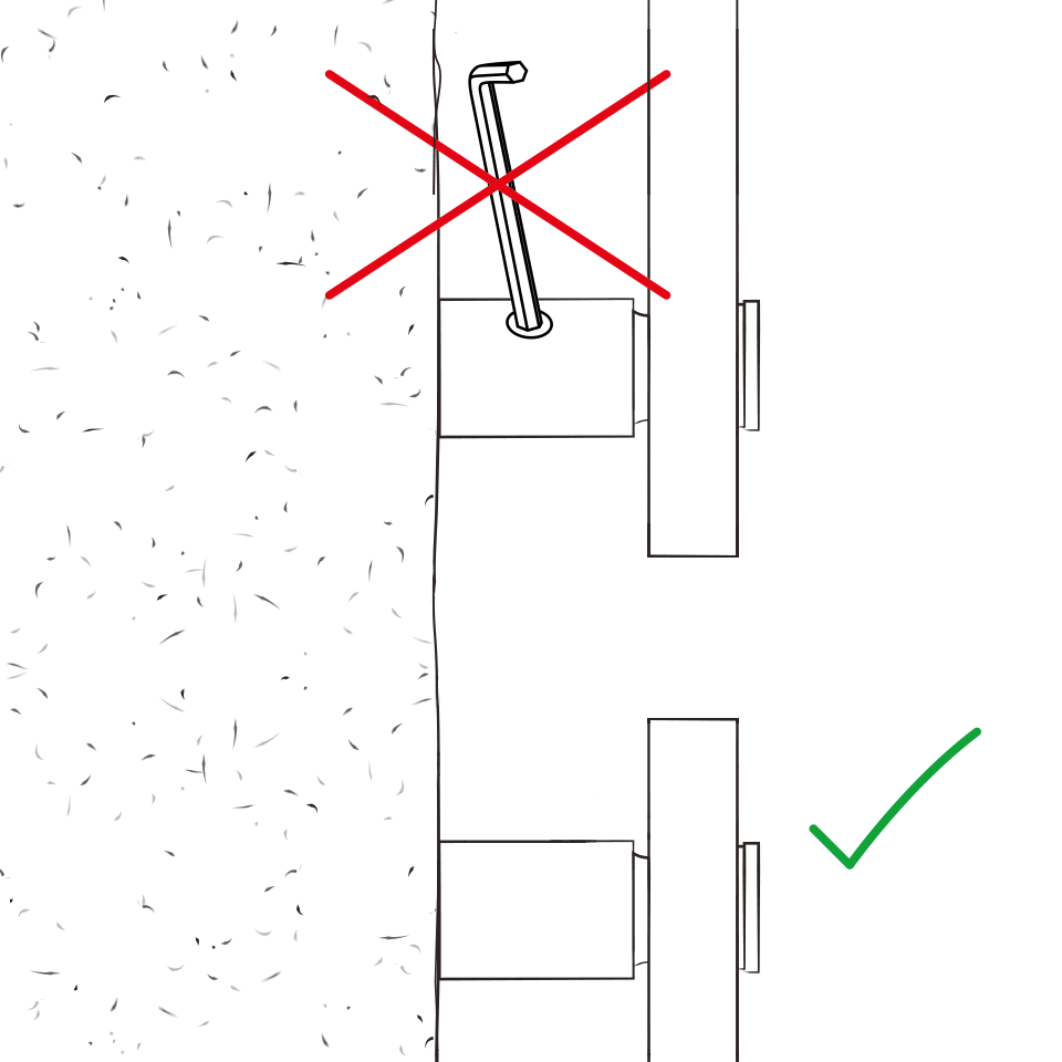 Imbusové šrouby jsou malé a snadno se ztratí. Jemné závity nedrží pevně a rychle se zkroutí. Montáž pomocí imbusových klíčů je v úzké vzdálenosti od stěny nepohodlná a nepříjemná.