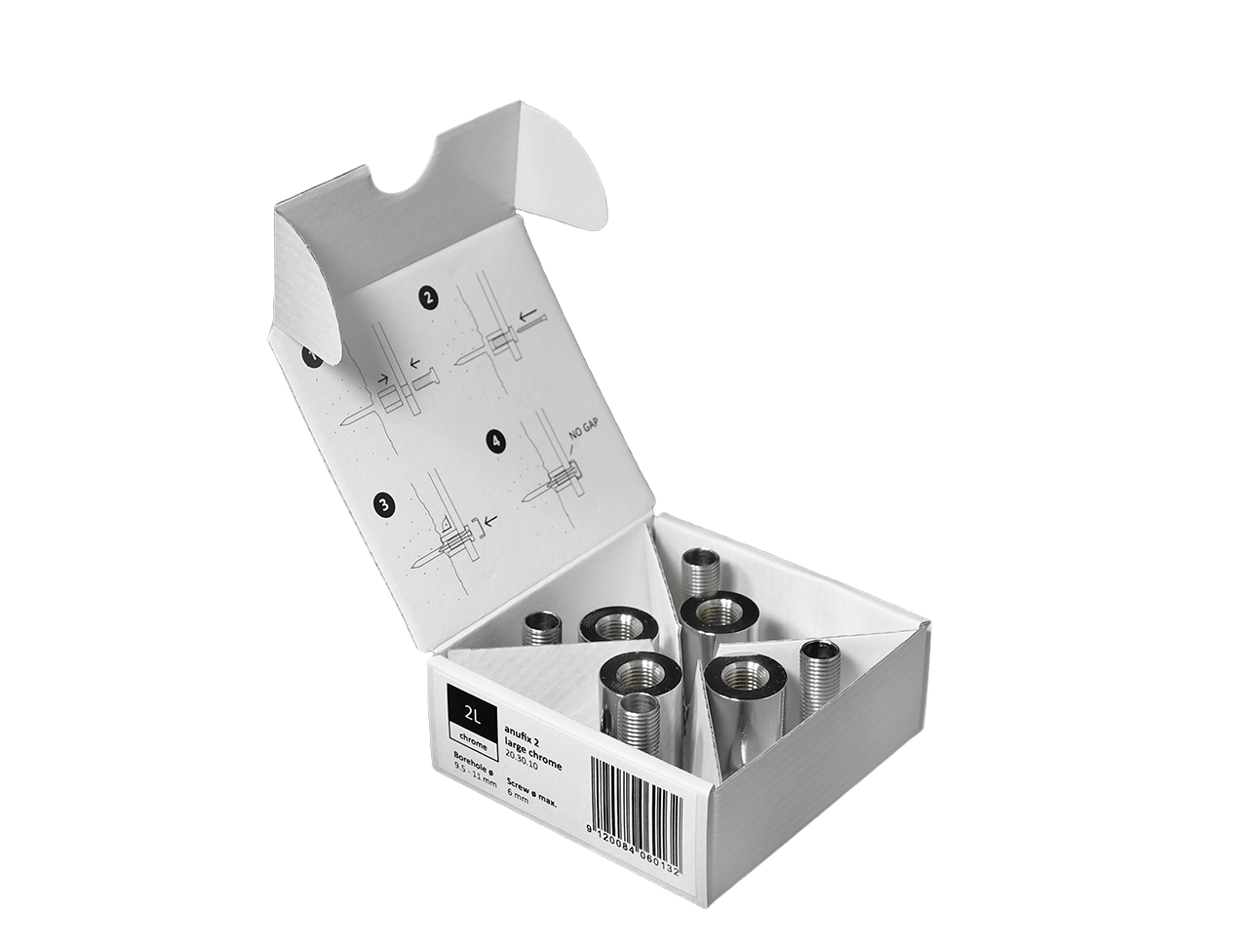 Všechny díly třídílného systému anufix 2 jsou sešroubovány. Před upevněním na stěnu lze na štítek namontovat distanční šrouby. To umožňuje jednoduchou a rychlou montáž bez nutnosti použití dalších nástrojů.